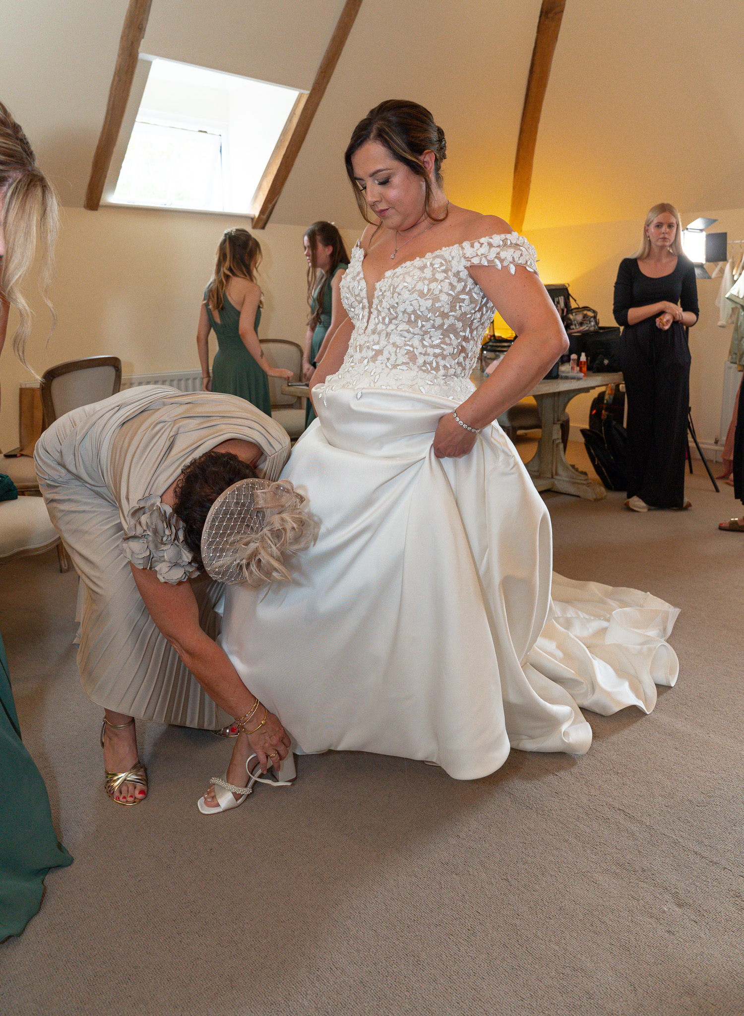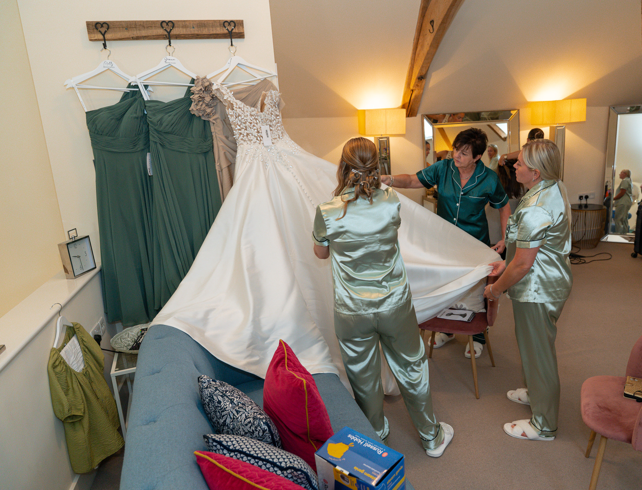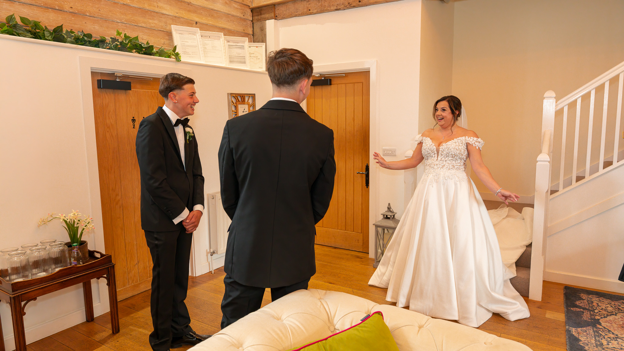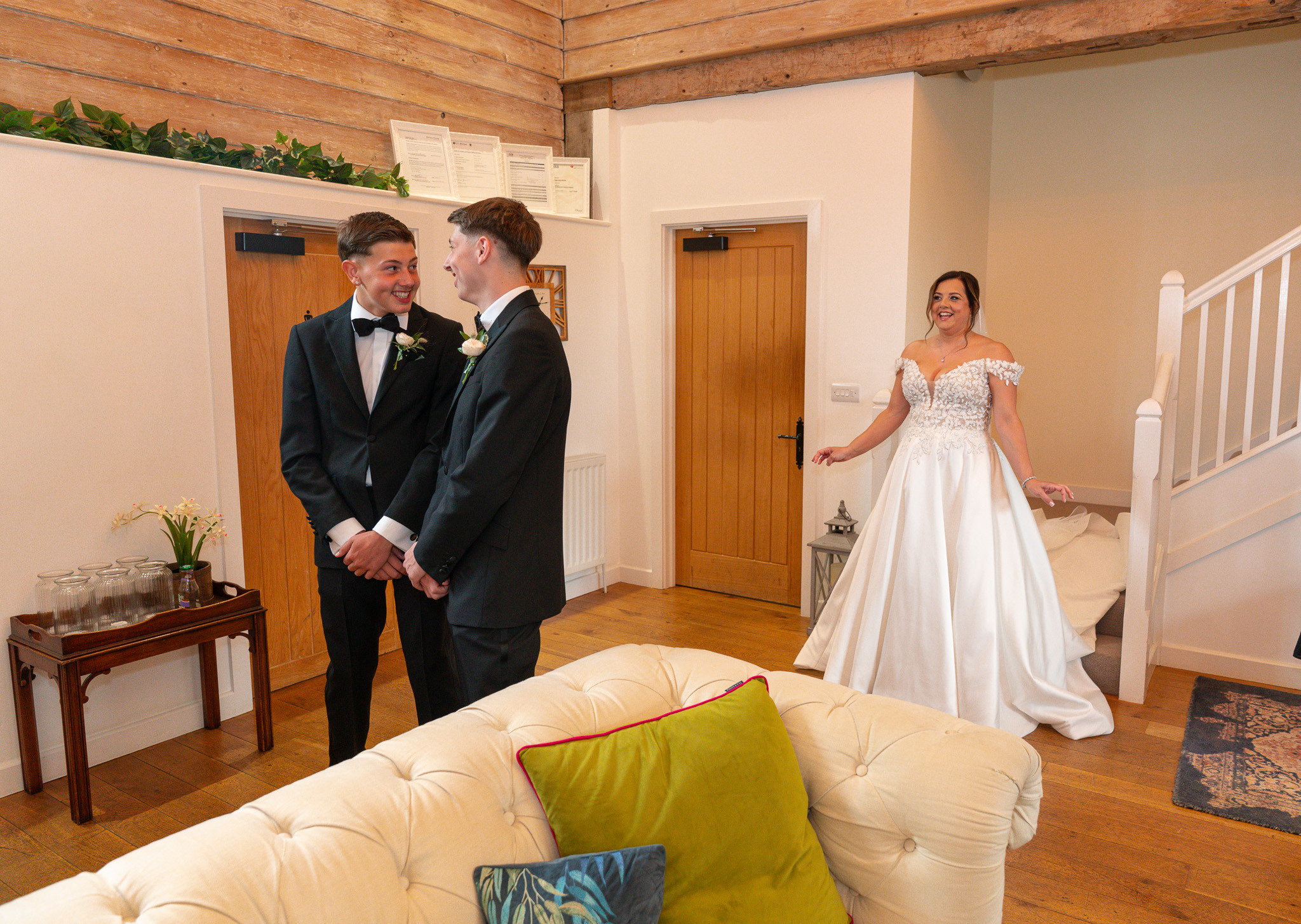 At the same time, George and his groomsmen were living their best lives outside. Garden games, sunshine, and zero interest in their suits until the very last moment. But when they finally suited up? Wow. Sharp, stylish, and ready to roll for this Alswick Barn wedding.