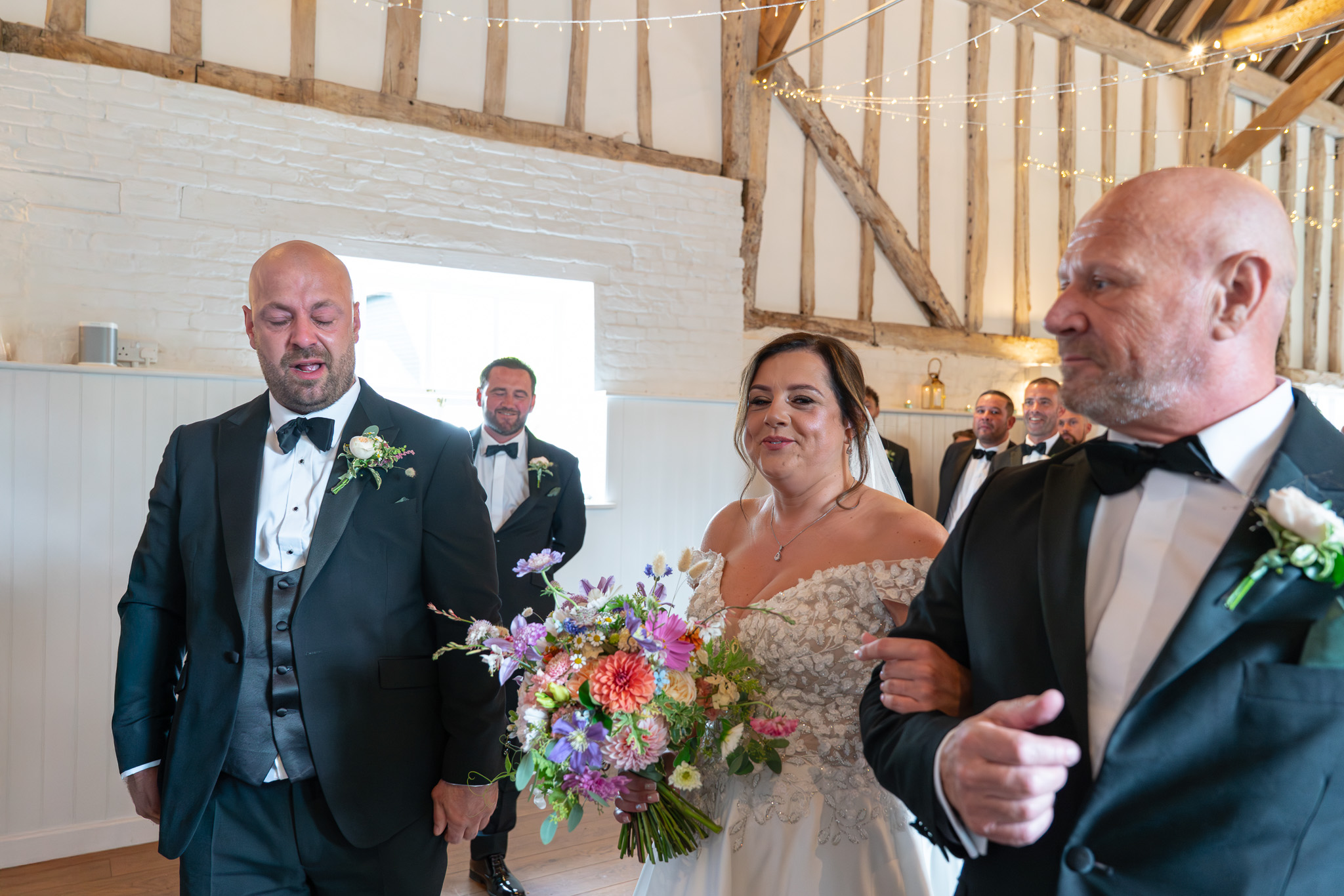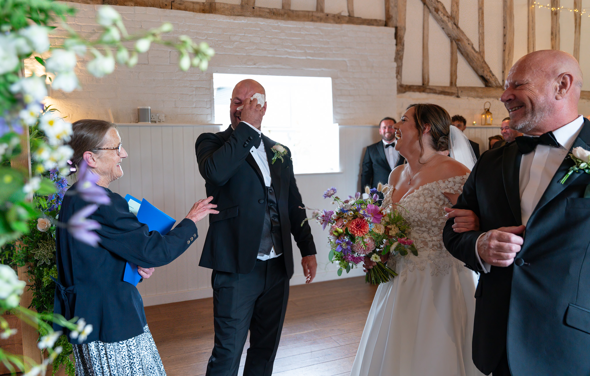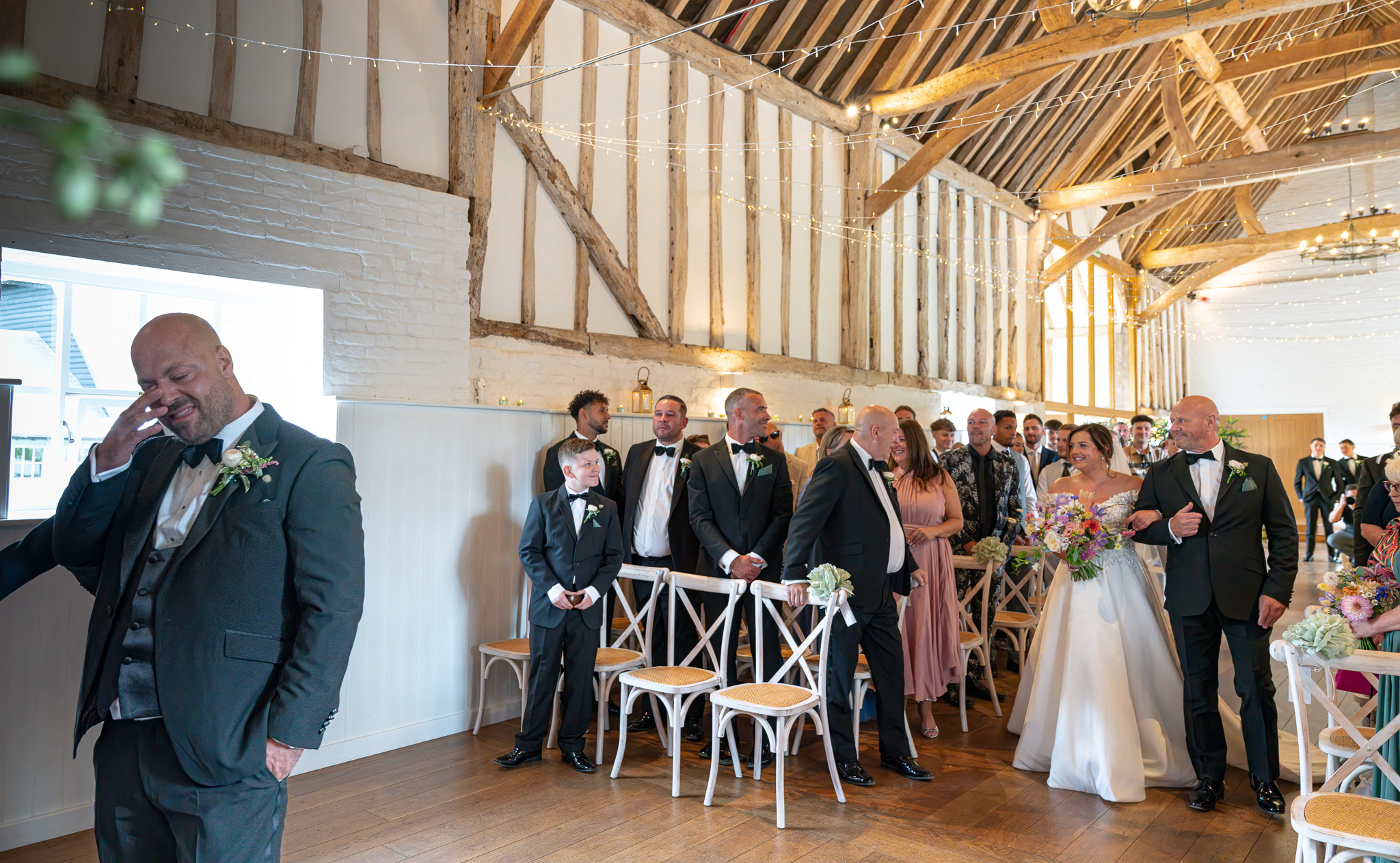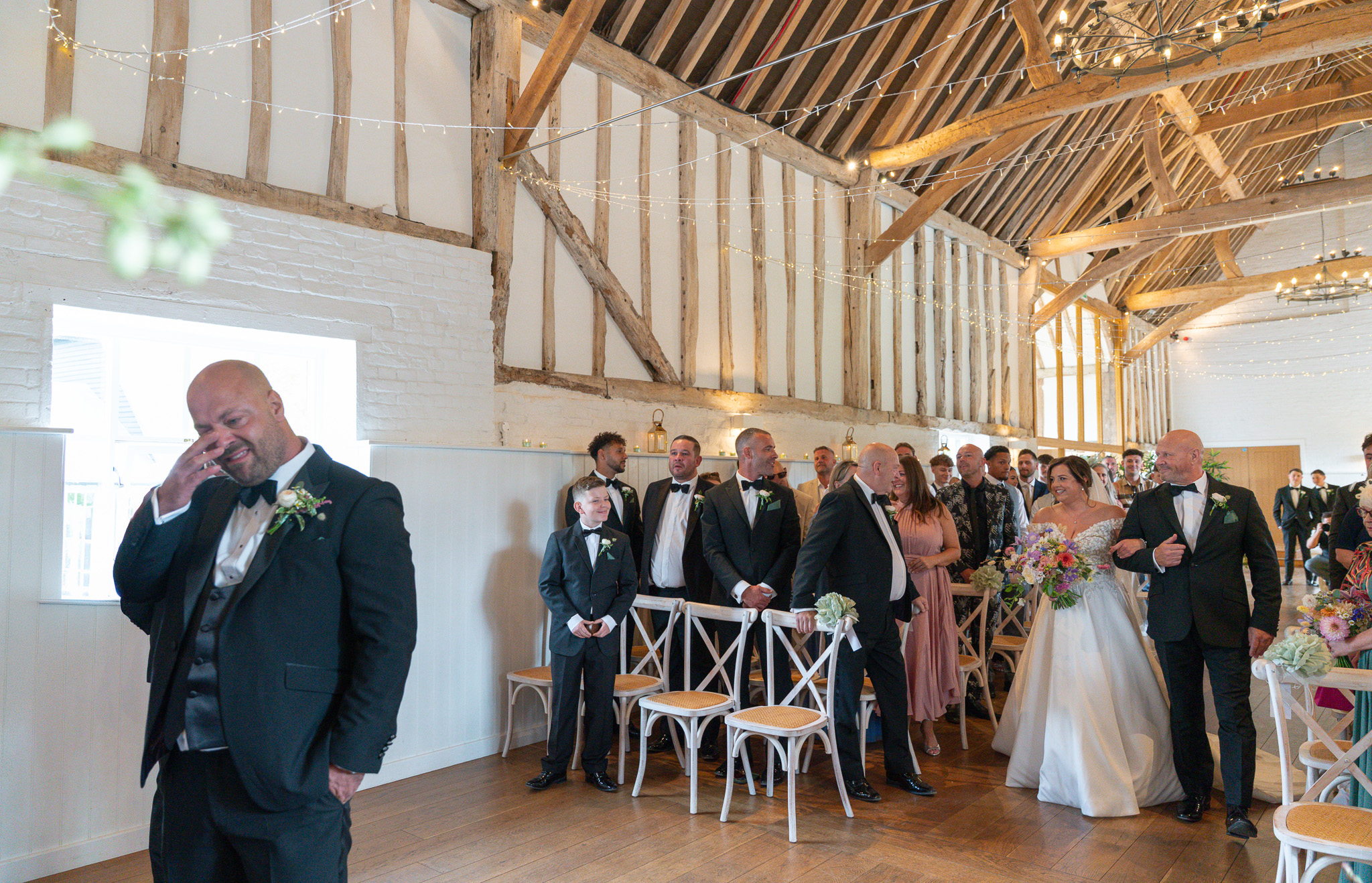 Her boys walked her part of the way down the aisle before handing her over to her dad. George, standing at the top, was visibly overcome. That raw, unfiltered emotion is exactly why I adore being a wedding photographer in Hertfordshire. These fleeting moments? They’re everything.