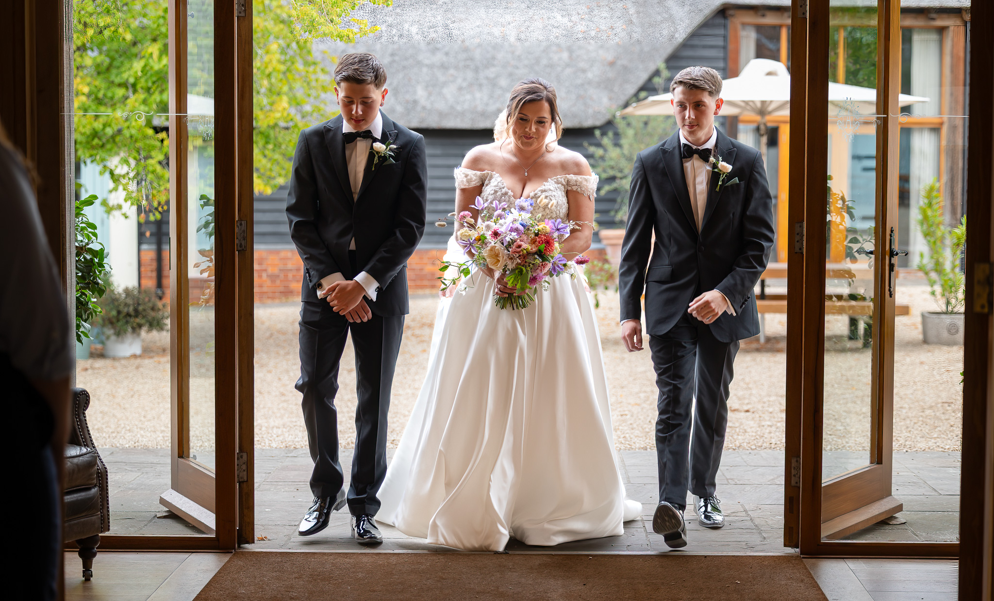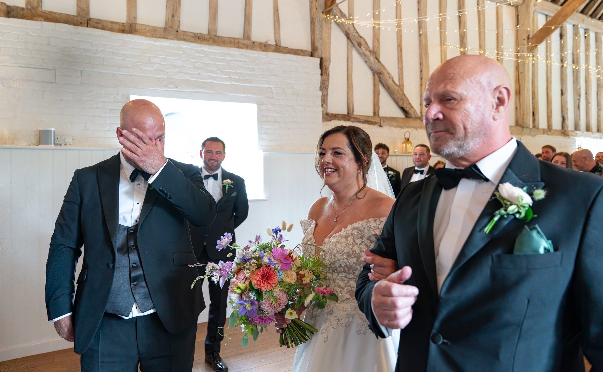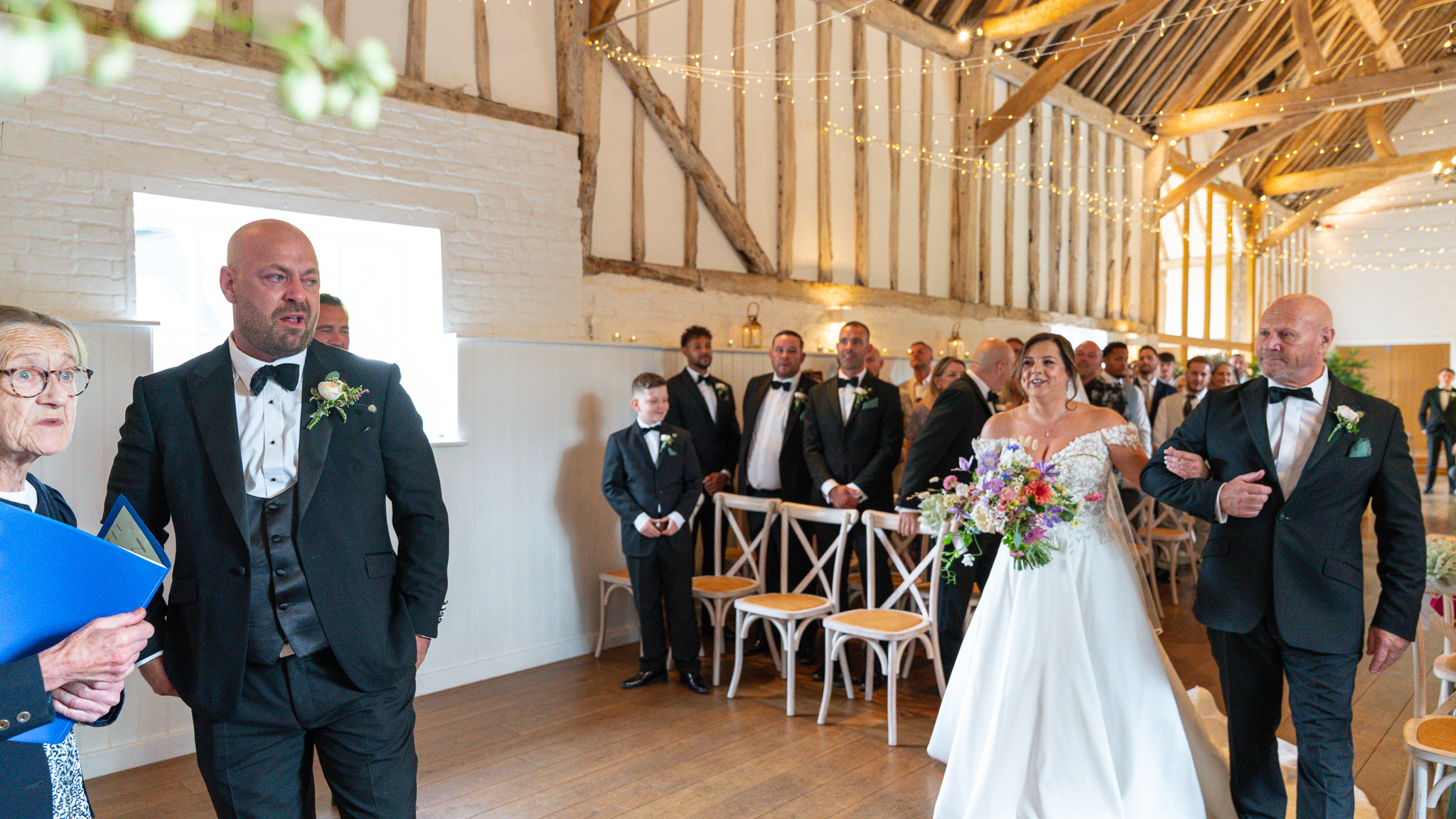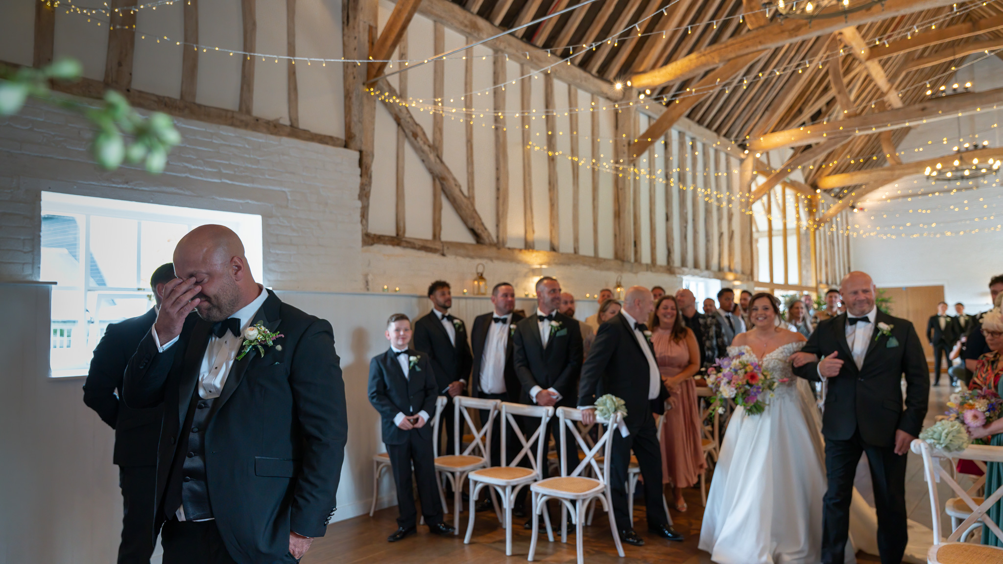 Her boys walked her part of the way down the aisle before handing her over to her dad. George, standing at the top, was visibly overcome. That raw, unfiltered emotion is exactly why I adore being a wedding photographer in Hertfordshire. These fleeting moments? They’re everything.