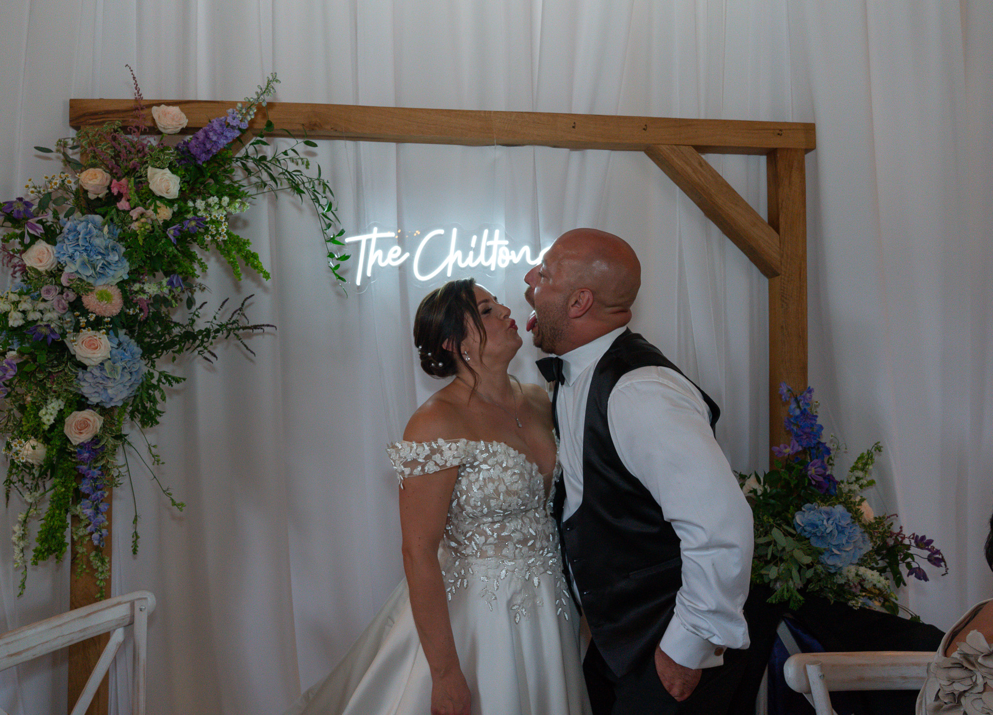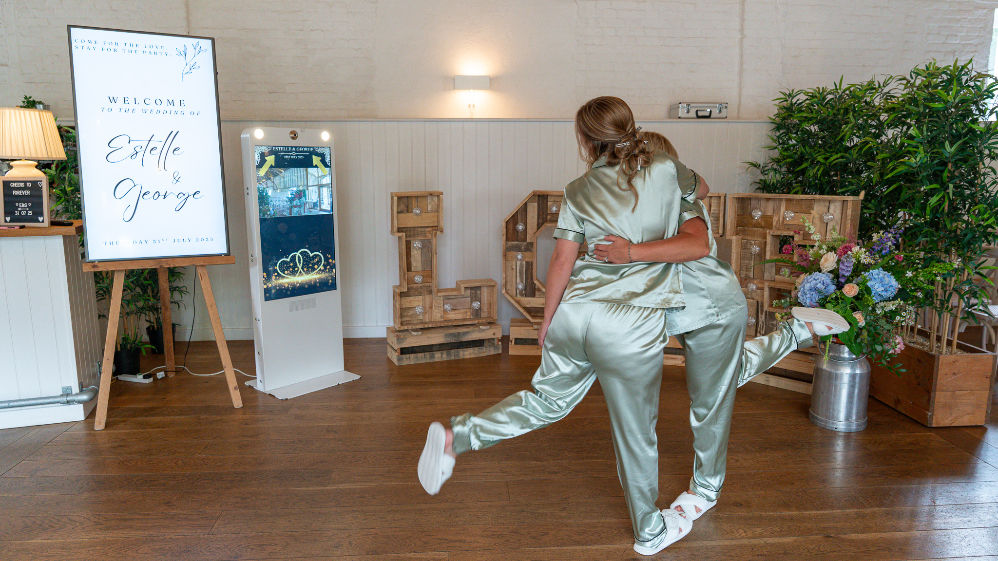 While all that was happening, a few bridesmaids snuck off to the ceremony room in search of cooler air. Naturally, they found the photo pod and couldn’t resist a cheeky session, multitasking bridesmaids at their finest.