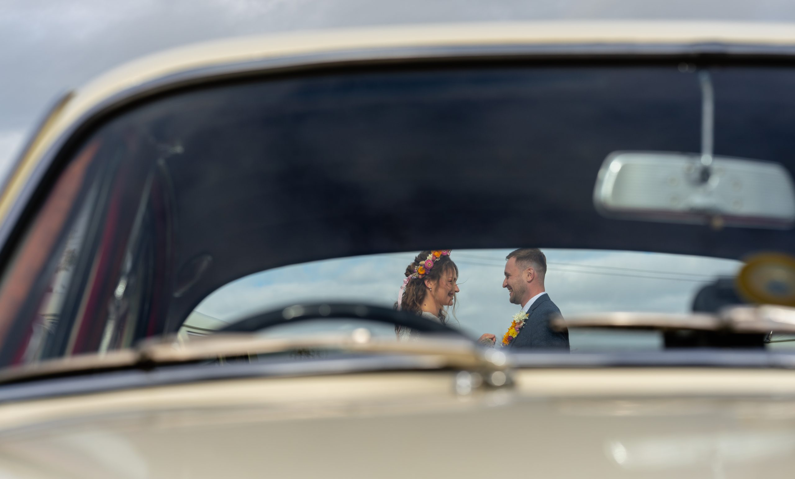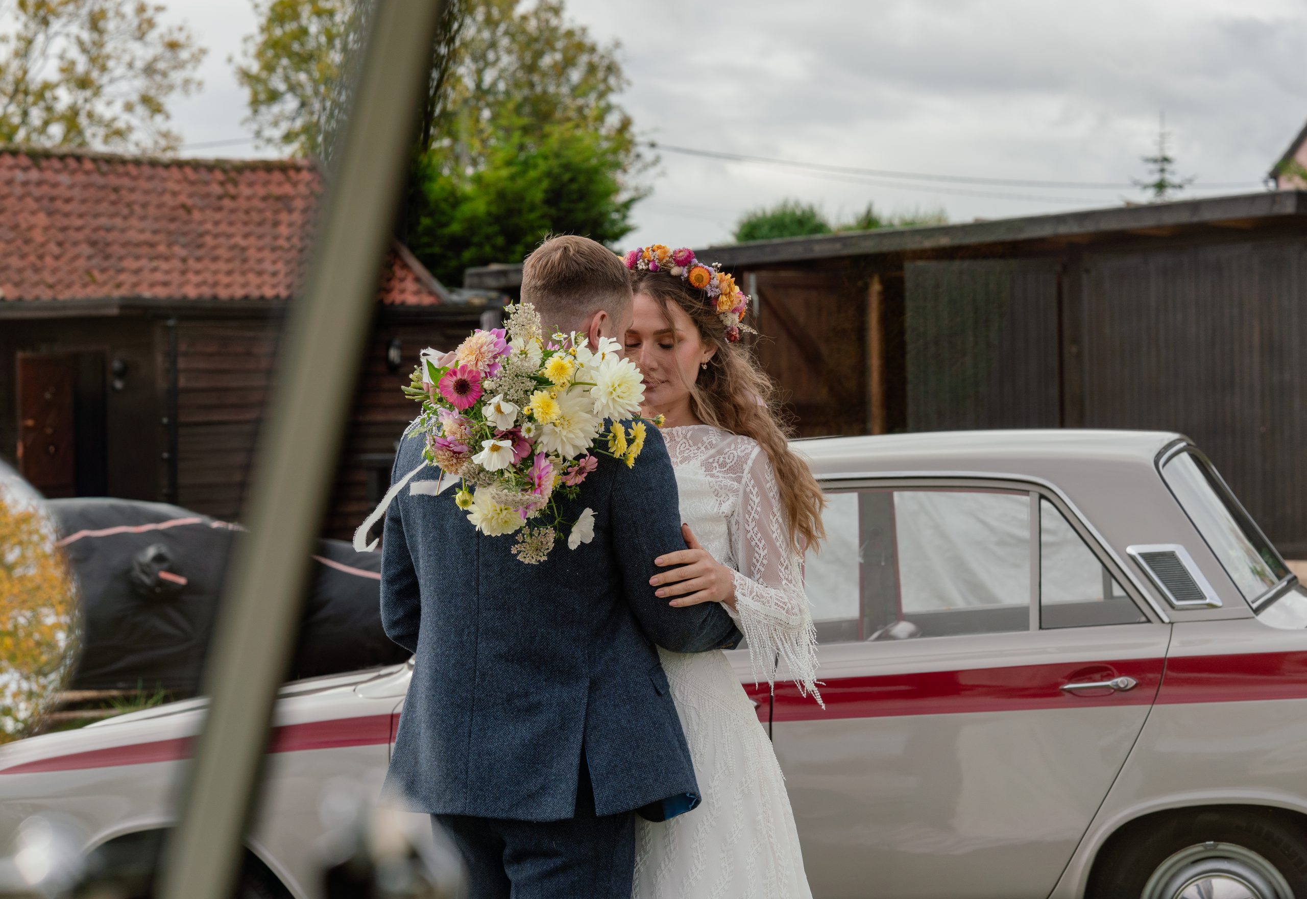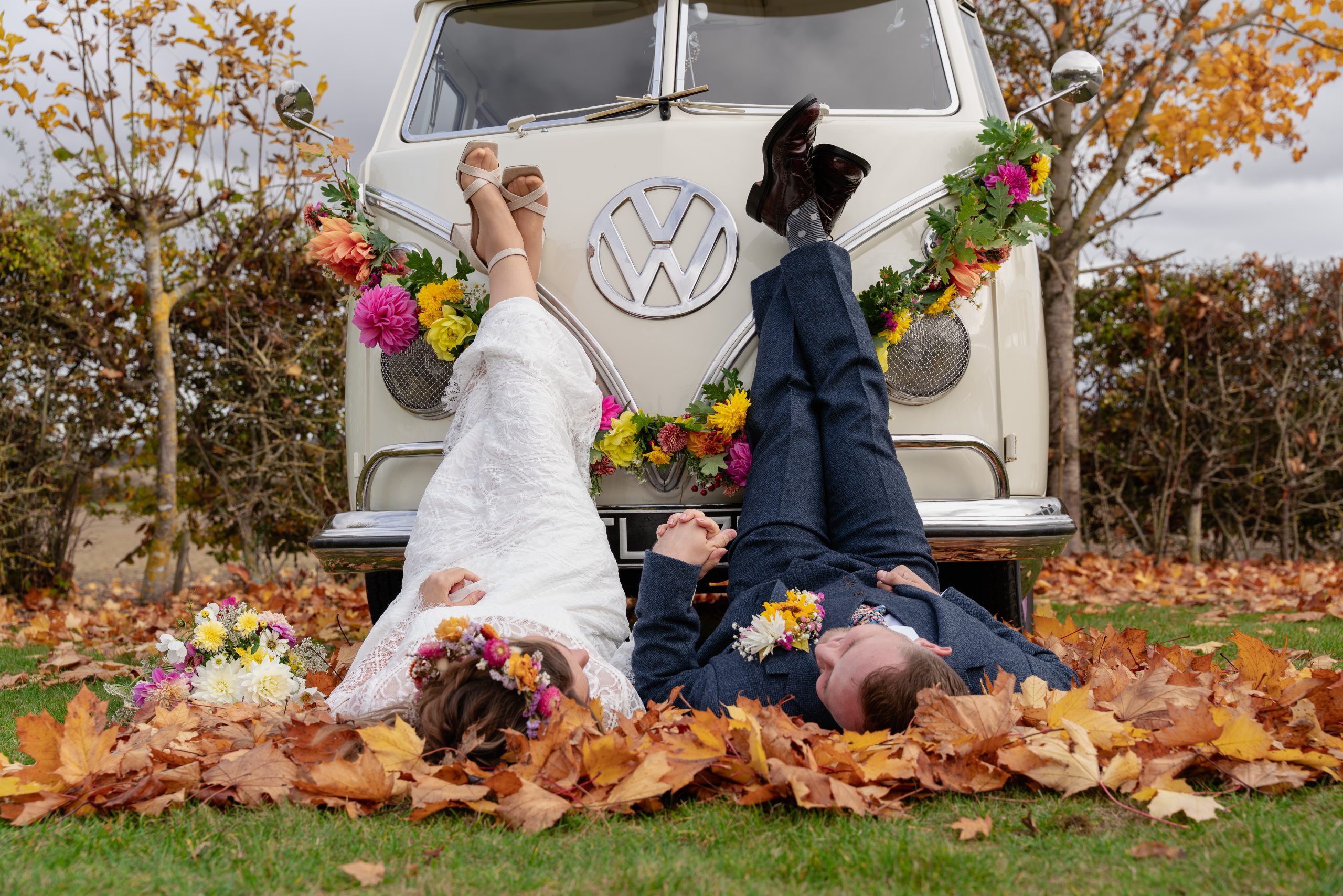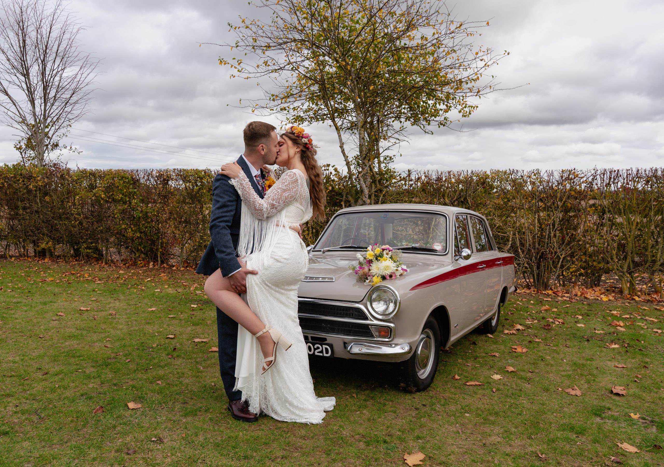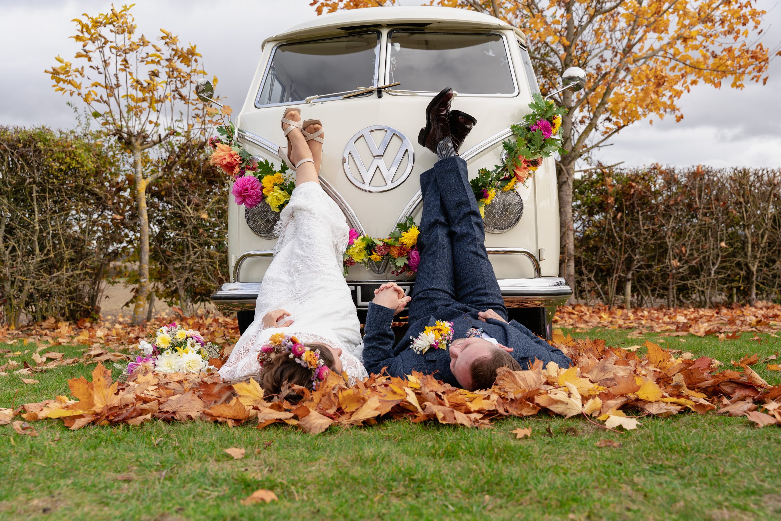 Now, you might think, “But Tracy, those cars speak for themselves!” And you’d be absolutely right. Buuuut Kate didn’t want them just speaking; she wanted them performing a full West-End show, lined up together in all their autumnal countryside glory. Think rolling hills, golden leaves, retro charm, and a bit of Hertfordshire wedding photographer magic sprinkled over the top.